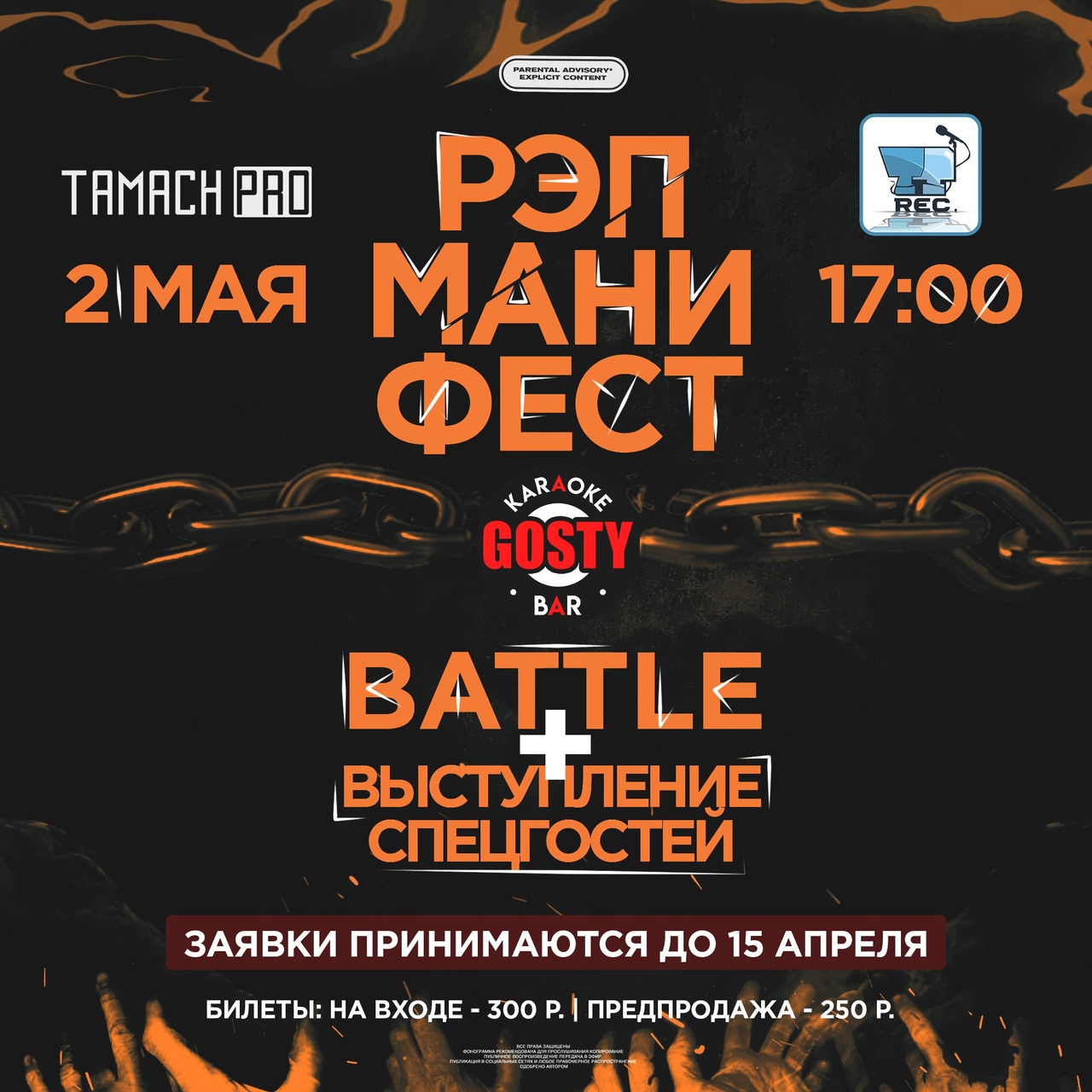 16-го апреля, организаторы, исходя из представленного вами материала отберут 10 MC/групп, затем формируется банк.