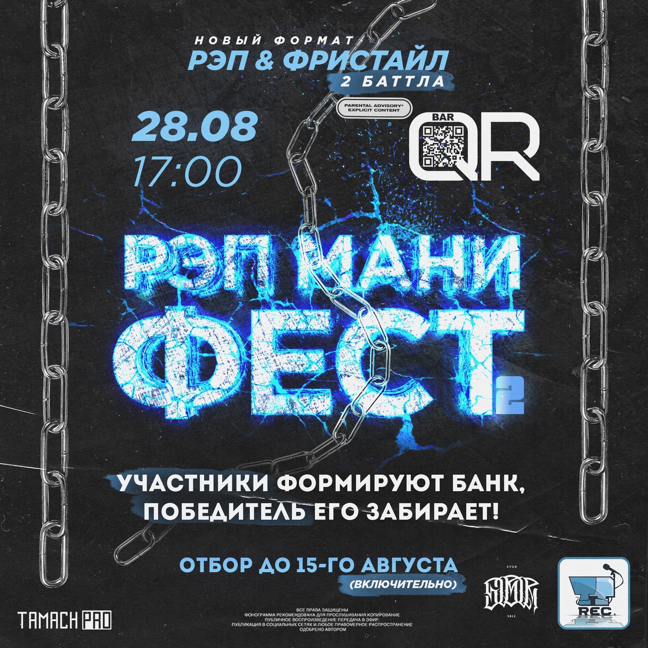 28-го августа в 17:00 в "QR"Bar состоится второй рэп-фестиваль, в рамках которого пройдут 2 баттла: